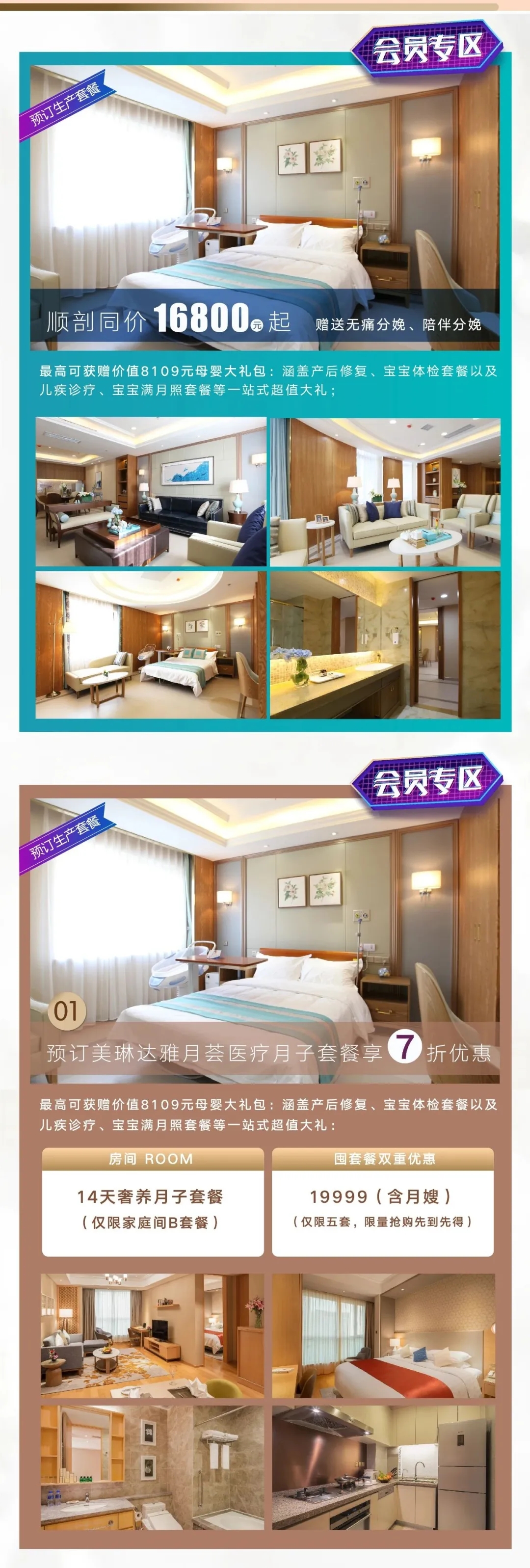 2、同时预订生产与月子套餐仅赠送一个订房礼包;